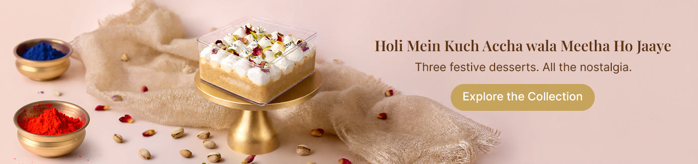 This Holi, savour the spirit of the season with our Thandai Tres Leches — a light vanilla sponge soaked in fragrant thandai milk with rose, cardamom, saffron, and nuts. The beloved festive drink, beautifully reimagined as a dessert.