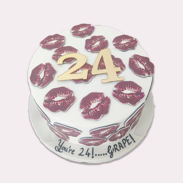 This would be a 1KG Vanilla Choco Noir cake covered in white buttercream with lipsticks marksin 2D edible print around the cake,