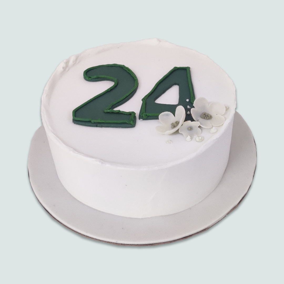 This will be 1kg vanilla chocolate chip cake covered in White Buttercream and with the Number in Green hand piped, and with fondant flowers