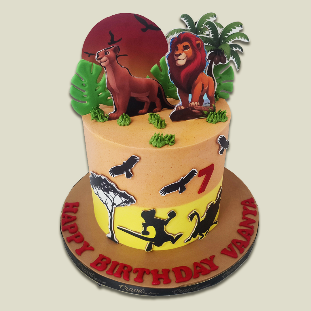 This would be 2.5KG, Tall Vanilla Choco Noir cake covered in buttercream, with fondant leaves, edible prints and silhouettes as per the image. Remove sima image and put Nala image cut out