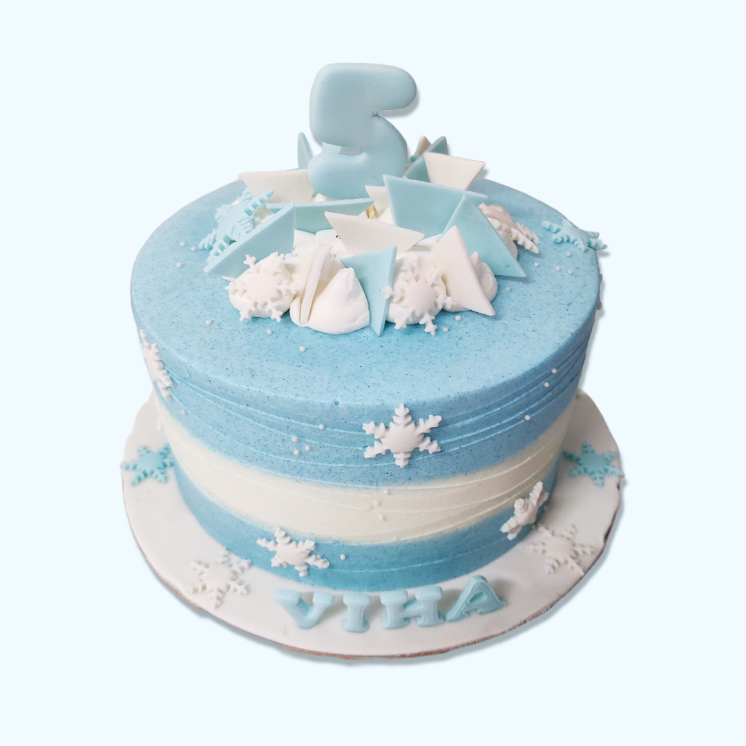 Step into a wintery wonderland with our “Where is Elsa” cake, a dreamy delight in icy blue and snowy white, crafted for little Frozen fans. This White & Black sponge cake is wrapped in a smooth ombré buttercream swirl, finished with a magical white drip, delicate snowflakes, icy fondant shards, and a bold fondant number topper. Perfect for themed birthdays or snowy celebrations. Choose from a range of flavours for a magical treat!