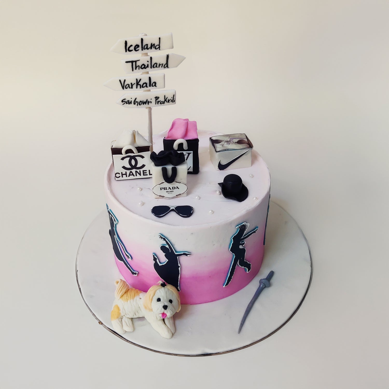 Celebrate the multi-talented woman who truly does it all with our Miss All-Rounder cake, a showstopper designed for birthdays, milestone celebrations, or as a tribute to the achiever who never stops shining. This ombre pink cake features elegant dancer silhouettes, a cute Shih Tzu for pet lovers, a fencing sword, and iconic luxury shopping bags for fashion enthusiasts. Complete with travel signboards and chic accessories, this travel-themed cake is perfect for women who love adventure, dance, and style. Choose from a range of flavors and make her moment unforgettable!