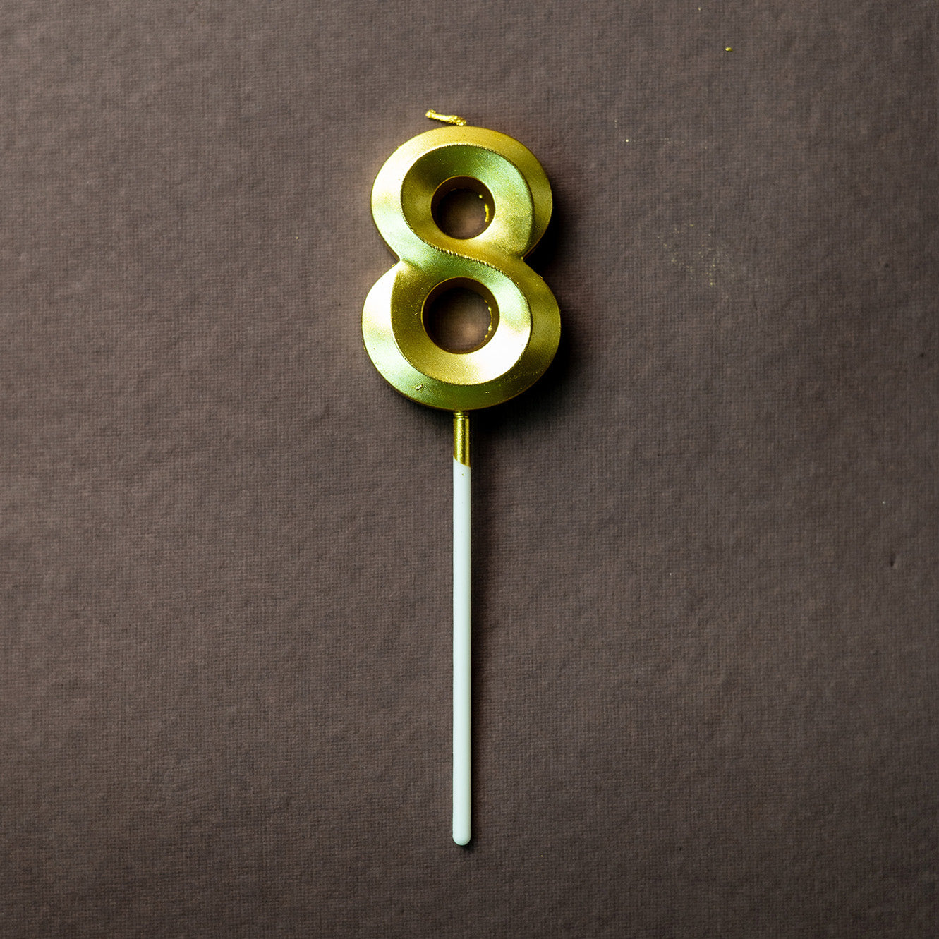 Metallic Gold Number Candles - "0" is backordered and will ship as soon as it is back in stock.