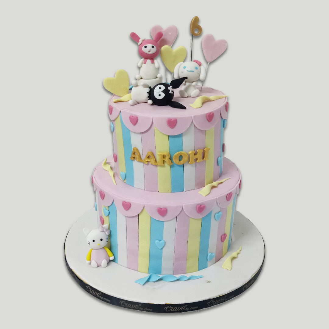 This would be 5KG, 2TIer Chocolate Truffle cake covered in fondant, with fondant toppers and decorations as per the image. A few characters might go down, if any space on top.